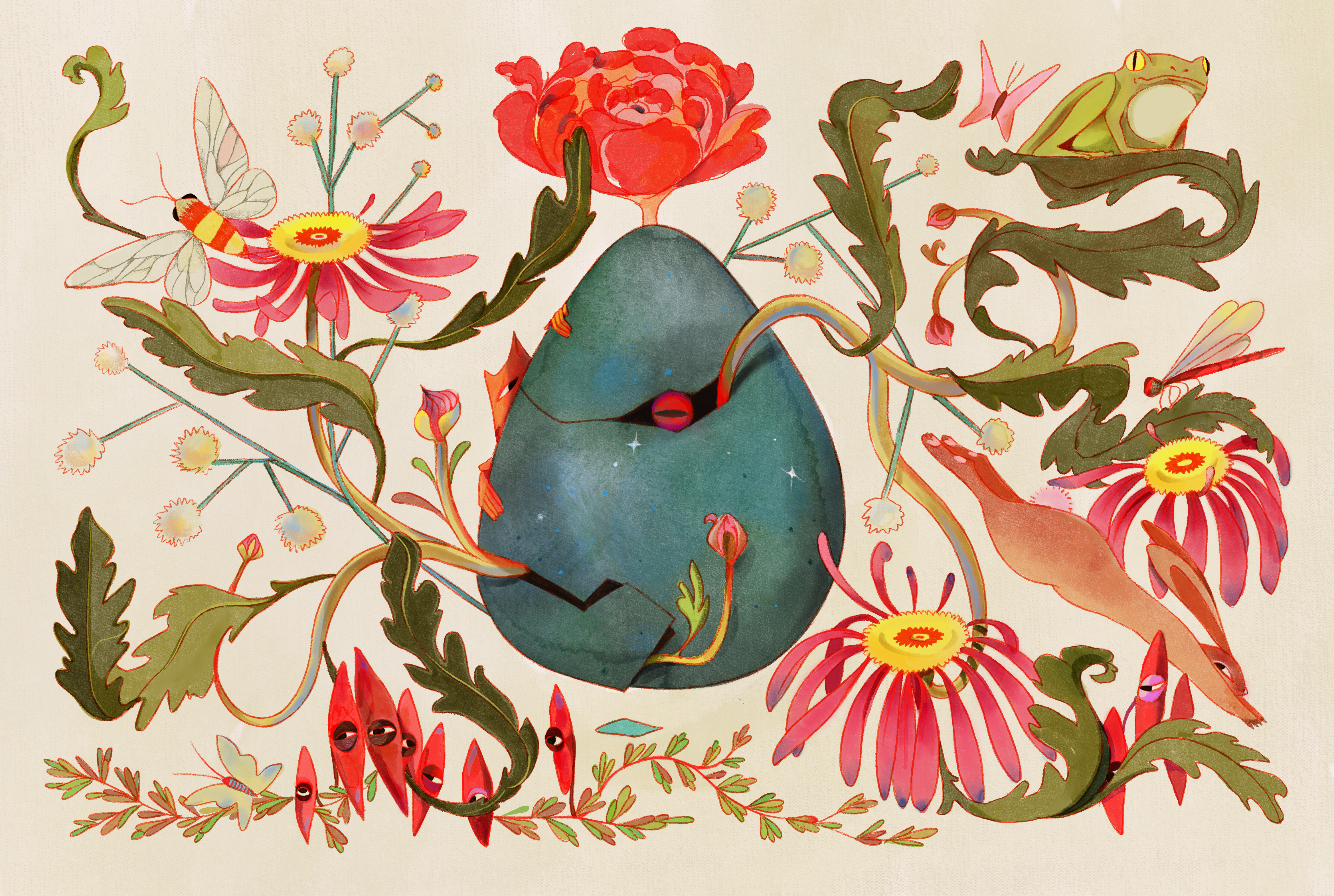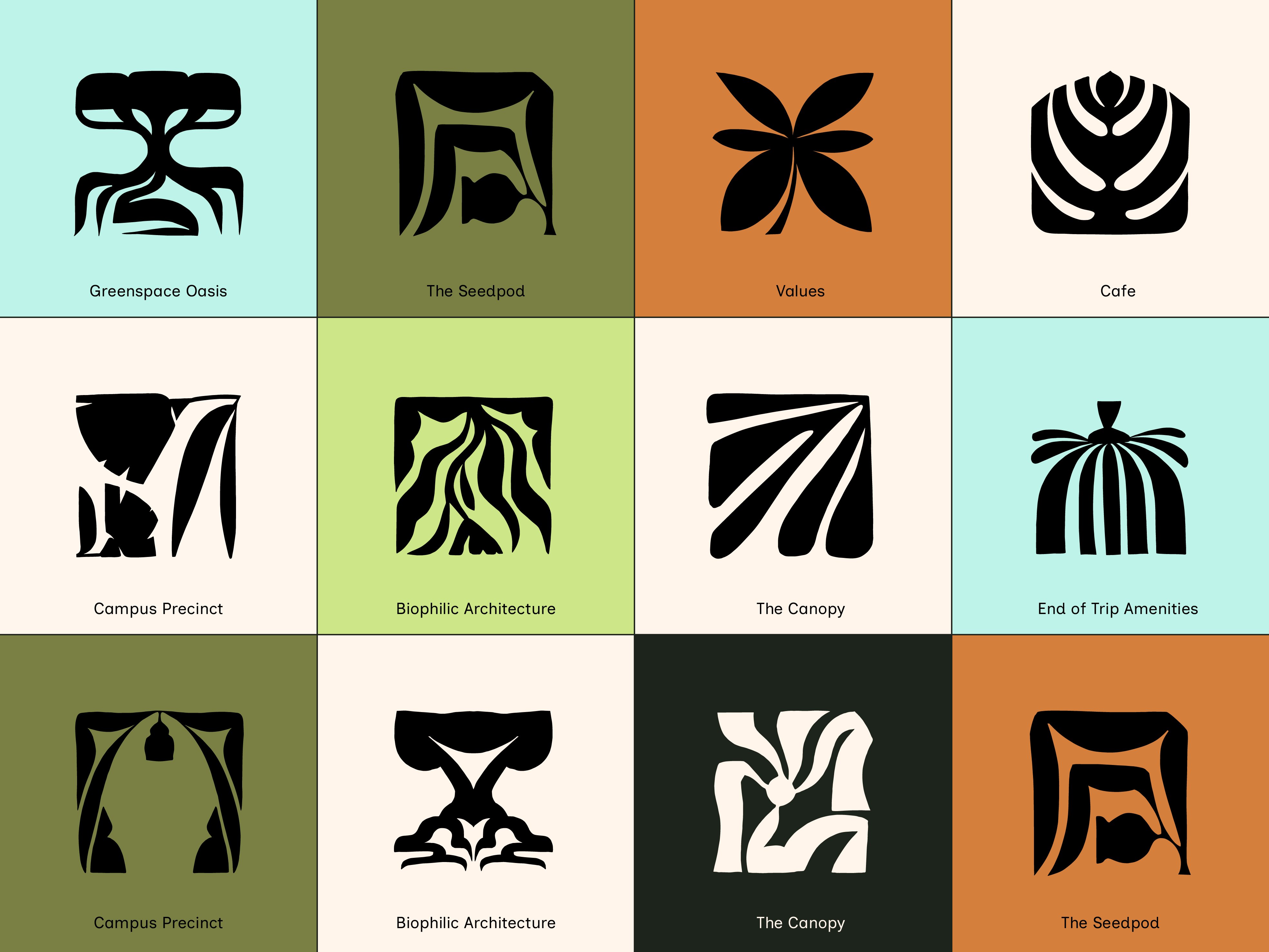 The illustrations were used as part of the building branding and proposed wayfinding, using Australian natives to match the gardens throughout.