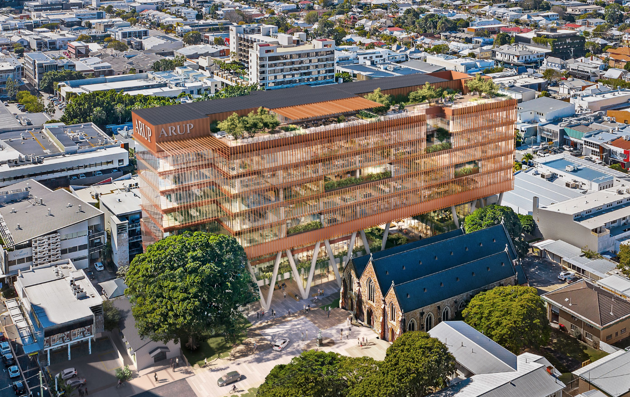 A set of illustrations for an 8-storey, 100% electric, green-powered, fossil fuel-free commercial office building on the doorstep of the vibrant James Street precinct in the heart of Fortitude Valley.